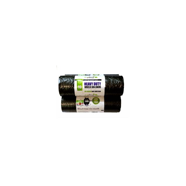 Take care of your trash with our high-quality, heavy-duty black bin liners specifically crafted for wheelie bins. Each roll contains 10 tough bags that are not only dependable but also eco-conscious, supporting the 'Go Green' initiative.